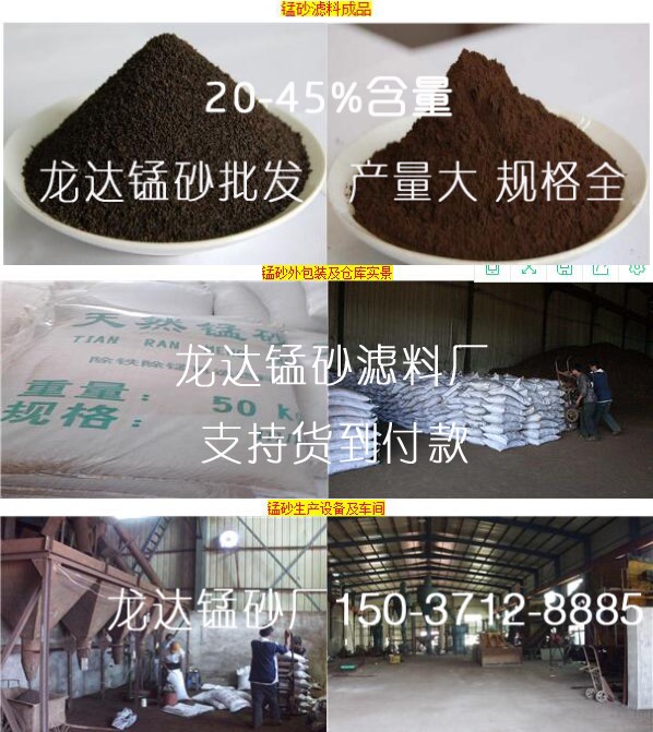 用于地下水除鐵和除錳的天然錳砂濾料,其錳的形態(tài)應以氧化錳為主。既可用于地下水除鐵,又可用于地下水除錳,生產(chǎn)使用證明鞏義市龍達水處理材料有限公司生產(chǎn)錳砂濾料能獲得良好除鐵和除錳效果。