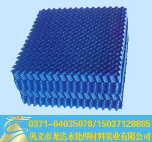 折波的板面加強了水流和空氣的擾流,其散熱面積增,系數較大,板面口圓錐形突出件,既起保護片距的作用,又能使片間落下的水流層濺散成細小水滴,使這種填料點(diǎn)滴性能提高冷卻效果,且配水均勻,表面積大,綜合性能較好。