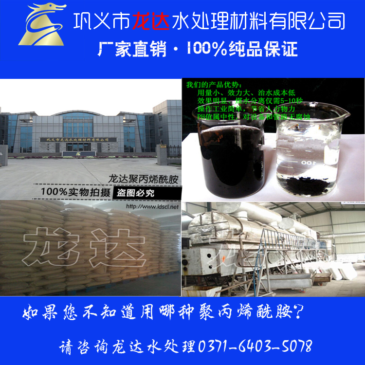鞏義市龍達水處理材料有限公司是國內早生產(chǎn)聚丙烯酰胺絮凝劑廠(chǎng)家之一,現有3條聚丙烯酰胺生產(chǎn)線(xiàn),日生產(chǎn)能力120噸,為河南大的聚丙烯酰胺生產(chǎn)廠(chǎng)家,專(zhuān)業(yè)聚丙烯酰胺生產(chǎn)團隊,優(yōu)惠聚丙烯酰胺價(jià)格贏(yíng)得客戶(hù)的好口碑。主要產(chǎn)品有選礦用聚丙烯酰胺、壓泥聚丙烯酰胺、污水處理聚丙烯酰胺、制香用高粘性聚丙烯酰胺的專(zhuān)業(yè)生產(chǎn)廠(chǎng)家,為河南聚丙稀酰胺龍頭企業(yè)!