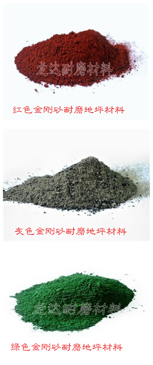 彩色金剛砂復合料顏色分類(lèi):水泥本色、綠色、紅色、黑色、黃色(特殊顏色可按訂單生產(chǎn))