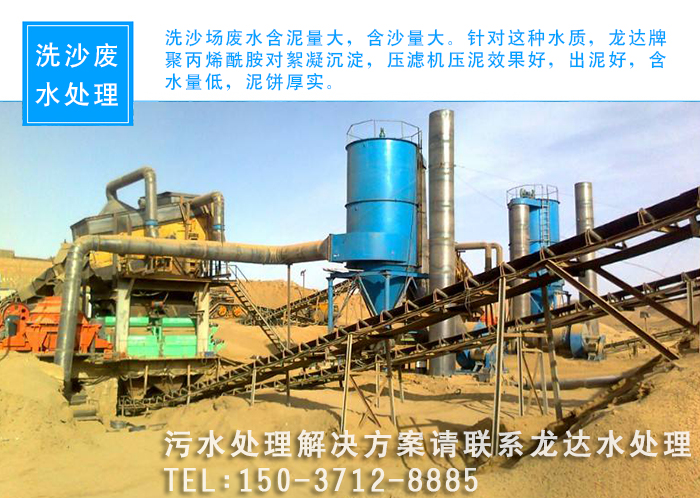 洗沙場(chǎng)廢水如何處理 鞏義龍達水處理有門(mén)道 洗沙場(chǎng)廢水含泥量大,含沙量大。針對這種水質(zhì),聚丙烯酰胺生產(chǎn)廠(chǎng)家鞏義龍達水處理新制研發(fā)洗沙場(chǎng)廢水專(zhuān)用聚丙烯酰胺,沉淀劑,帶式壓濾機壓泥專(zhuān)用聚丙烯酰胺,板框壓濾機專(zhuān)用聚丙烯酰胺。效果好,出泥好,含水量低,泥餅厚實(shí)。